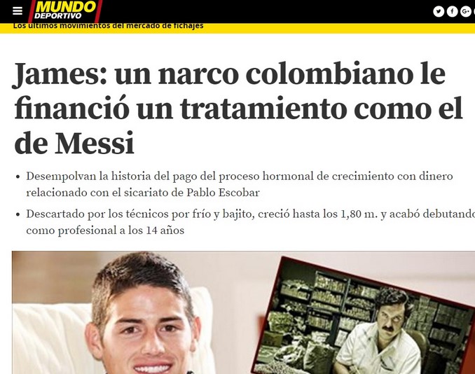 Según Mundo Deportivo de España, al volante le pagaron un “proceso hormonal de crecimiento con dinero relacionado con el sicariato de Pablo Escobar”.