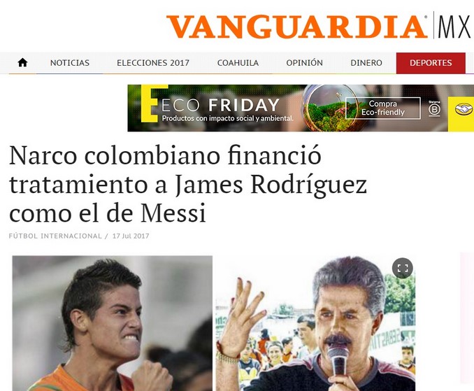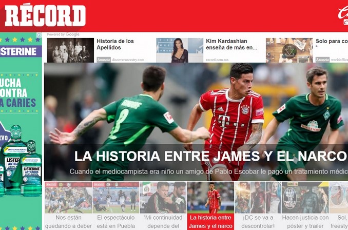 “James Rodríguez y la historia que lo liga al narcotráfico”, tituló Récord de México, que sin temor habla de “la historia” entre el mediocampista del Bayern y el “exsocio” de Escobar.
