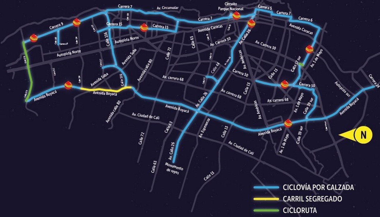 Cierres por la Ciclovía Nocturna en Bogotá: