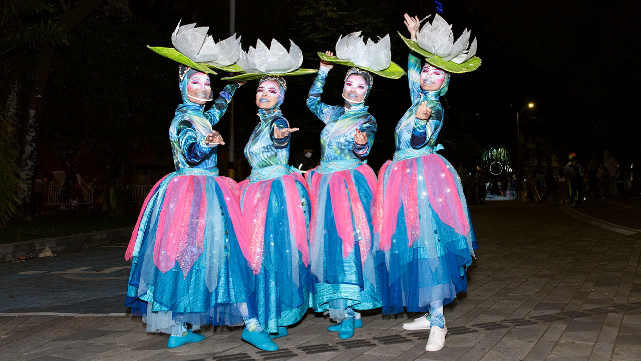 Este espectáculo iniciará a las 7:00 p. m., con nueve comparsas, seis de ellas seleccionadas a través de la Convocatoria de Fomento y Estímulos para el Arte y la Cultura, con el otorgamiento de $300 millones; dos comparsas de barrios, procesos comunitarios del programa Planeación del Desarrollo Local y Presupuesto Participativo; y una presentación organizada por la Secretaría de Movilidad. También, estarán las bandas de marcha Prado Brasilia y Unión Central, elegidas igualmente mediante convocatoria de estímulos.