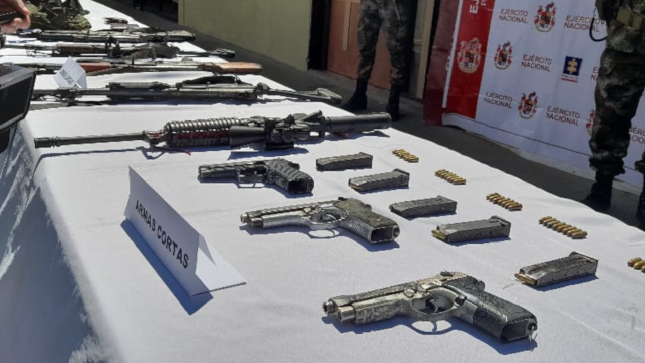 Dato: Según el reporte, en el desarrollo de la acción militar también fueron incautados 5 fusiles, 3 pistolas, más de 1500 cartuchos de diferentes calibres, proveedores, explosivos, al igual que material de intendencia, comunicaciones y de uso privativo de las Fuerzas Militares.