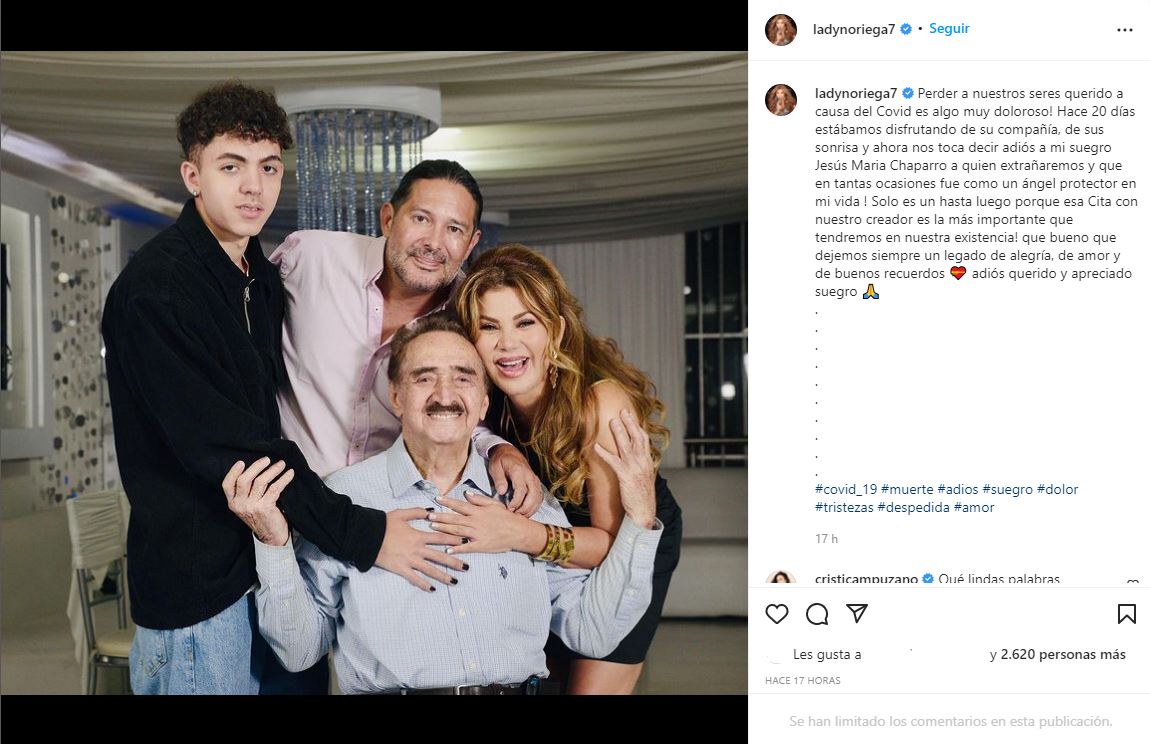 Lady Noriega atraviesa tiempos más que difíciles en el aspecto personal de su vida y es que hace tan solo algunas horas, anunció a través de su Instagram el fallecimiento de su suegro.