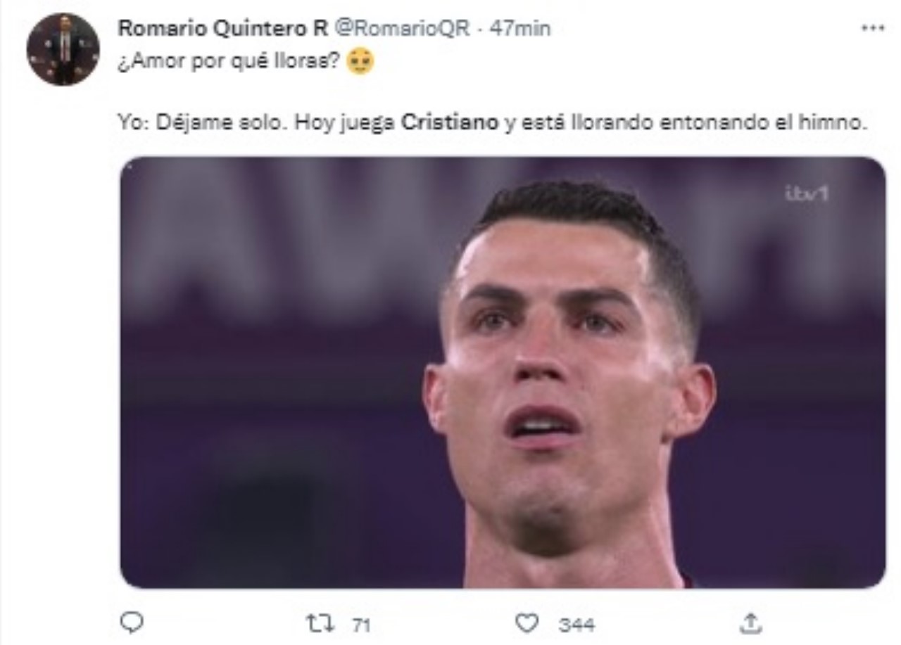 A Cristiano Ronaldo se le vio en llanto luego de que sonara el himno de Portugal en el debut del conjunto europeo en el Mundial Qatar 2022.