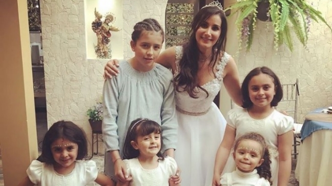 Se trata de Jordana Issa, quien se mostró en publicaciones con varios pajecitos vestidos de blanco al igual que ella.