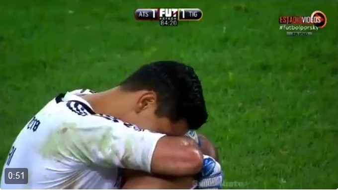 La increíble lesión de Óscar #Ustari en el partido entre Atlas y Tigres. Luxación de la rotula de la rodilla izquierda.