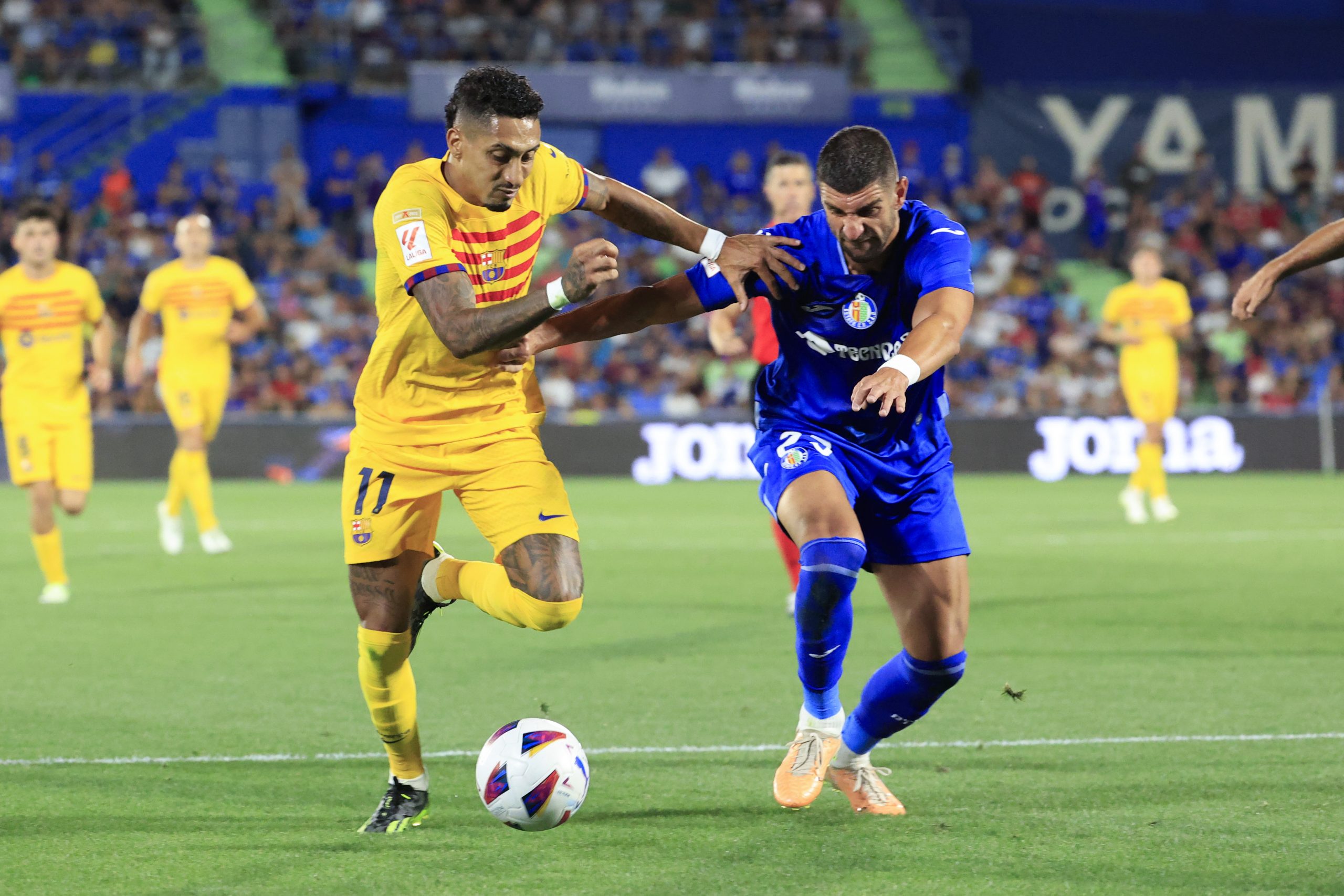 El mismo protagonista, Raphinha, tuvo que la mejor ocasión para marcar del Barcelona a los 36 minutos con un disparo cruzado que despejó David Soria, rebotó en el pecho de Stefan Mitrovic y se estrelló en el poste izquierdo de la portería del Getafe.