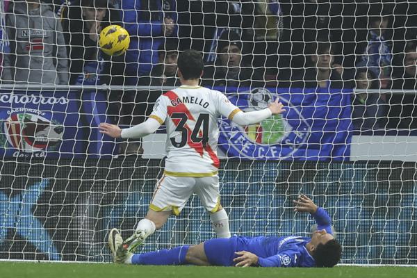 Madrid, 2 ene (EFE).- Sergio Camello marcó en el tiempo añadido de la primera parte y pone por delante al Rayo Vallecano en el derbi madrileño frente al Getafe, en el partido correspondiente a la jornada 19 de LaLiga EA Sports que se disputa en el Cívitas Metropolitano.