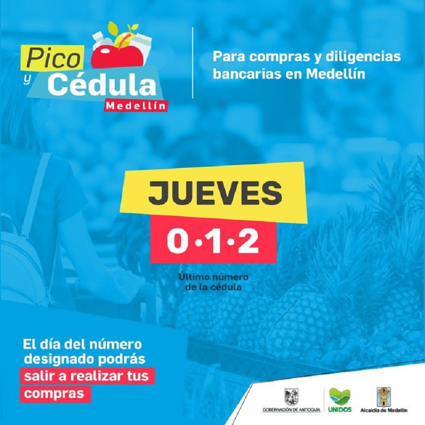 Desde este jueves comienza a operar la medida de Pico y Cédula en la ciudad de Medellín por efectos de la fase de mitigación por la crisis del COVID-19. Para tal fin, en la ciudad solo podrán circular las personas cuyos documentos de identidad finalicen en 0, 1 y 2. La medida aplica para abastecerse […]