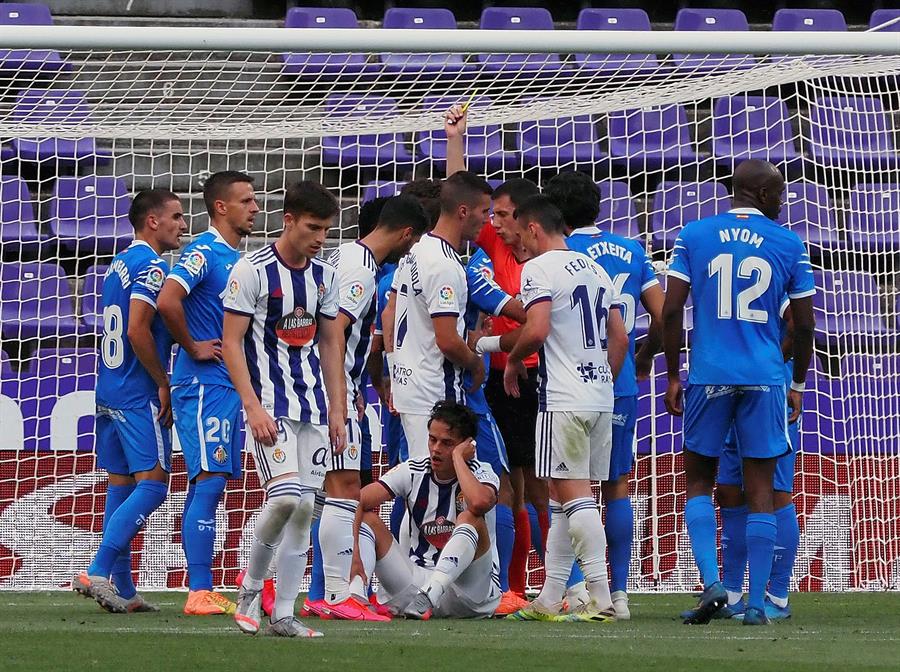 Árbitro: César Soto Grado (Comité manchego). Mostró cartulina amarilla a Ünal (m.22), Salisu (m.49), Joaquín (m.57), Alcaraz (m.85), Kiko Olivas (m.90+), del Real Valladolid y a Nyom (m.23), Djene (m.45+), del Getafe.