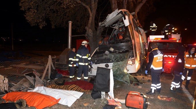 Sin embargo, durante la madrugada, cerca de la ciudad de Eskisehir, el autobús chocó contra unos árboles en el arcén y quedó gravemente dañado.