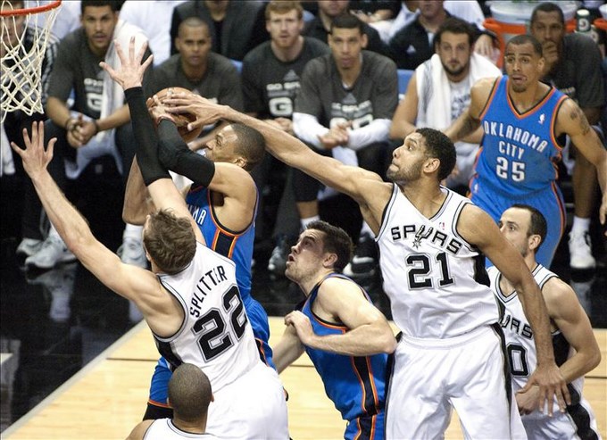 Duncan aportó 27 puntos (11-19, 0-0, 5-6), siete rebotes, tres asistencias y confirmó que al no tener enfrente al español Serbe Ibaka, no tuvo ningún problema para jugar su mejor partido en lo que va de la fase final.