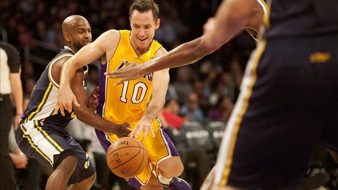 Un triple de Wesley Johnson en la primera asistencia de Nash en el partido cerró el primer cuarto. El récord del base canadiense parecía motivación suficiente para que los suyos intentaran dar la vuelta a la situación, y gracias al esfuerzo de Meeks y Jordan Farmar, los de Mike D’Antoni reaccionaron desde el perímetro.