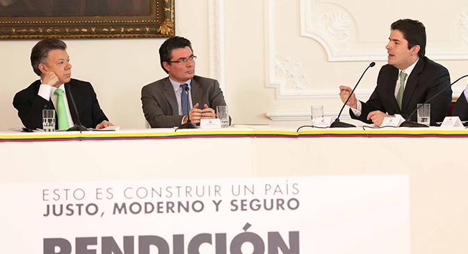 El Ministro de Vivienda, Luis Felipe Henao, durante su intervención en tercer día de rendición de cuentas del Gobierno Santos: Foto: Julián Sabogal. MVCT