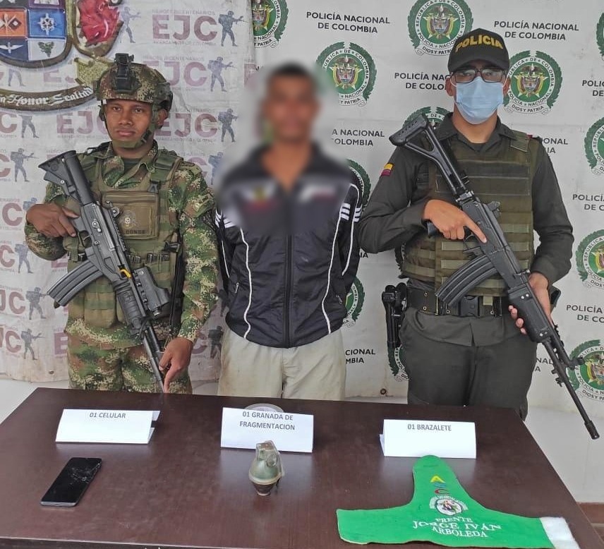 “Uno de los denominados puntos, quien tenía información y estaba entregando los datos sobre los movimientos de nuestros policías a este se le fue incautado una granada de fragmentación y otro, un presunto sicario que estaba recibiendo la información para atentar contra nuestras unidades, se le incautó un arma de fuego”, precisó el Brigadier General Gustavo Franco Gómez Comandante de la Región de Policía No.6.