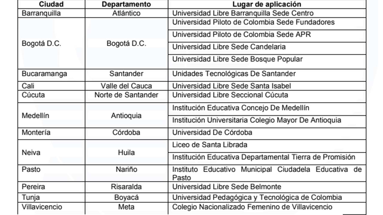 Estas pruebas se están haciendo en 17 instituciones educativas de Barranquilla, Bogotá, Bucaramanga, Cali, Cúcuta, Medellín, Montería, Pasto, Pereira, Tunja y Villavicencio.
