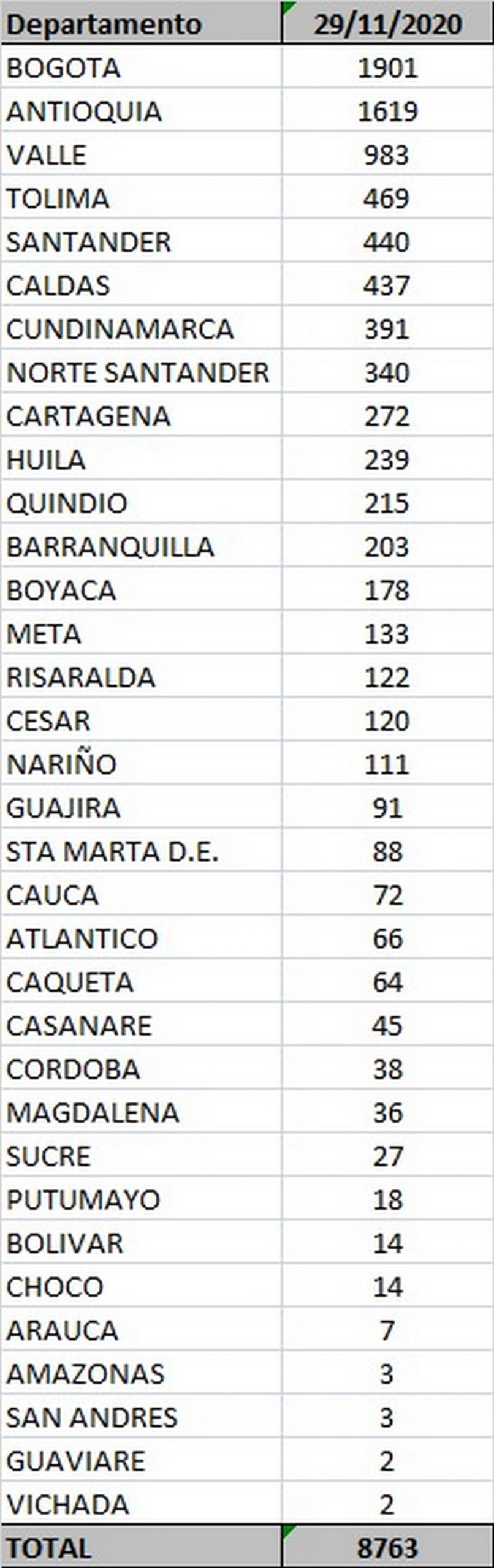 En la tarde de este domingo 29 de noviembre, el Ministerio de Salud hizo oficial que 183 pacientes perdieron la batalla contra el coronavirus y el país ahora cuenta en total con una cifra de 36.584 muertos. En su cuenta de Twitter, MinSalud confirmó que el país llegó a los 1.308.376 casos totales, de los […]