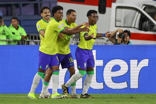 Caracas, 26 ene (EFE).- Con goles de sus figuras Endrick y John Kennedy, Brasil ganó por 2-0 y eliminó a Colombia este viernes en el partido de cierre de la tercera jornada del Grupo A, que hundió a los cafeteros en un último lugar de la zona en la que son colistas sin puntos.