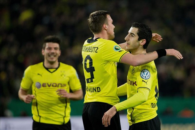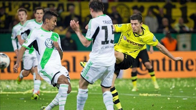 El Borussia Dortmund se clasificó hoy para la final de la Copa de Alemania al derrotar en la semifinal por 2-0 al Wolfsburgo, con goles del armenio Henrihk Mhkitaryan y del polaco Robert Lewandowski.