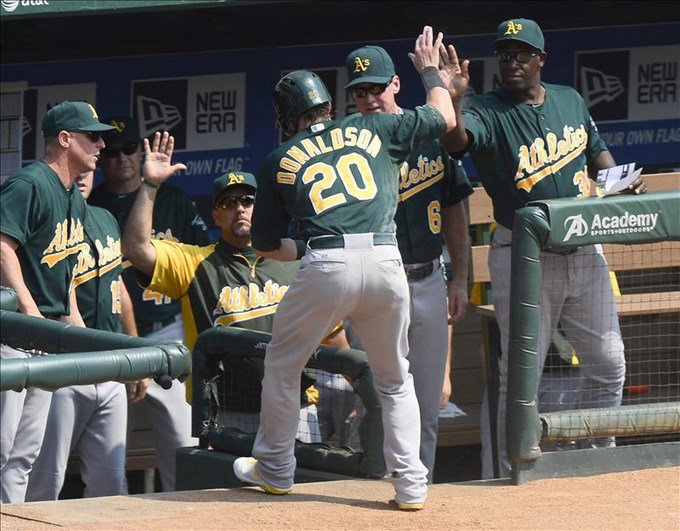 El antesalista Josh Donaldson pegó sencillo en el noveno episodio para remolcar la carrera del triunfo de los Atléticos de Oakland por 2-1 sobre los Angelinos de Los Ángeles.