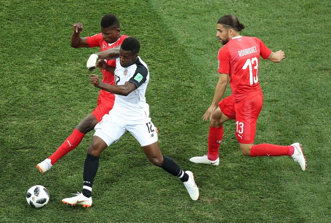 Breel Embolo of Switzerland (L) and Joel Campbell of Costa Rica (2L)
