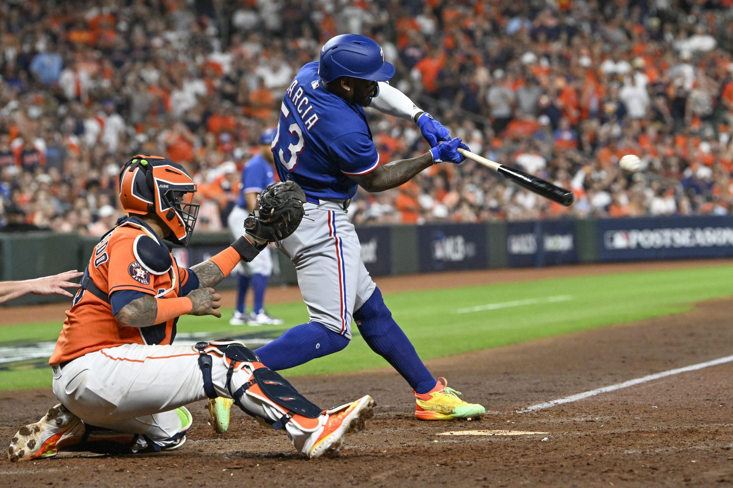 García, quien protagonizó una trifulca que terminó con su expulsión en el juego del pasado viernes, coleccionó su quinto jonrón de la postemporada y encabezó un ataque de los Rangers, en el que Mitch Garver y Jonah Heim también se volaron la barda.