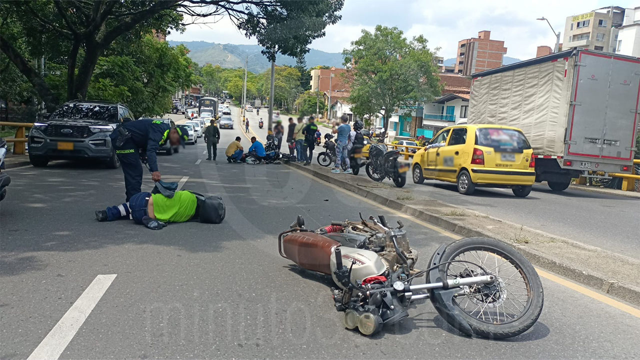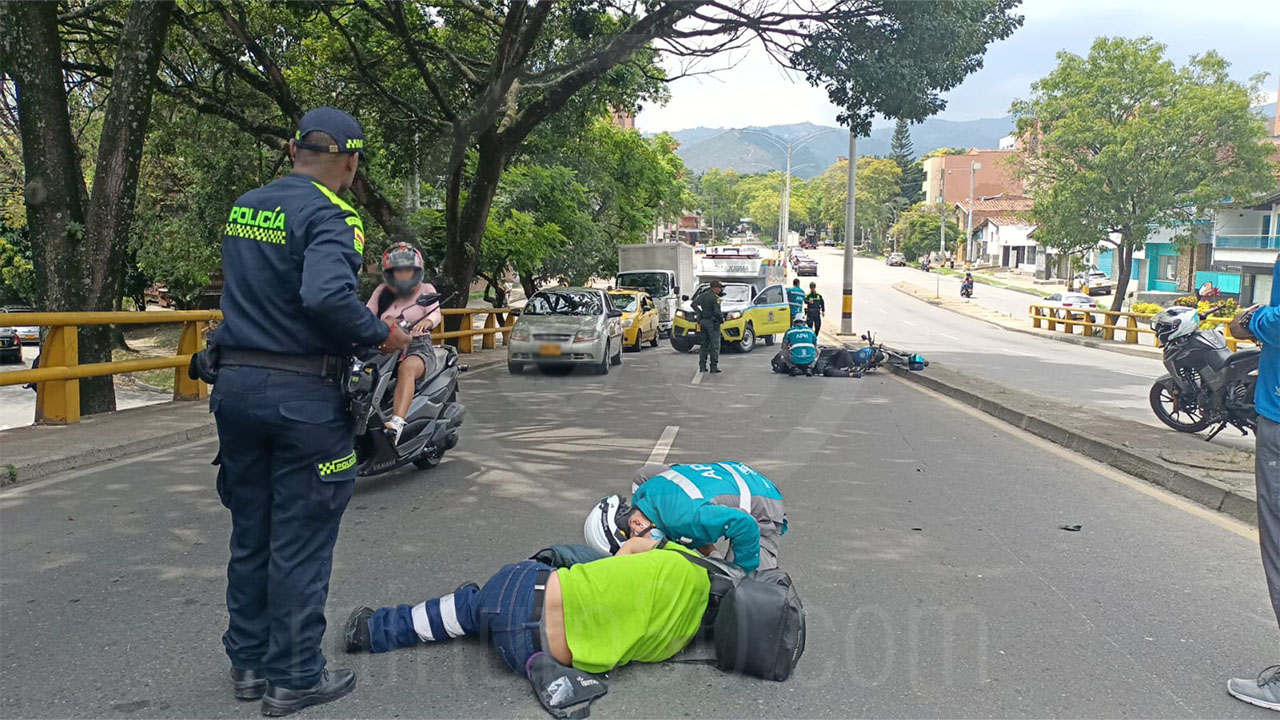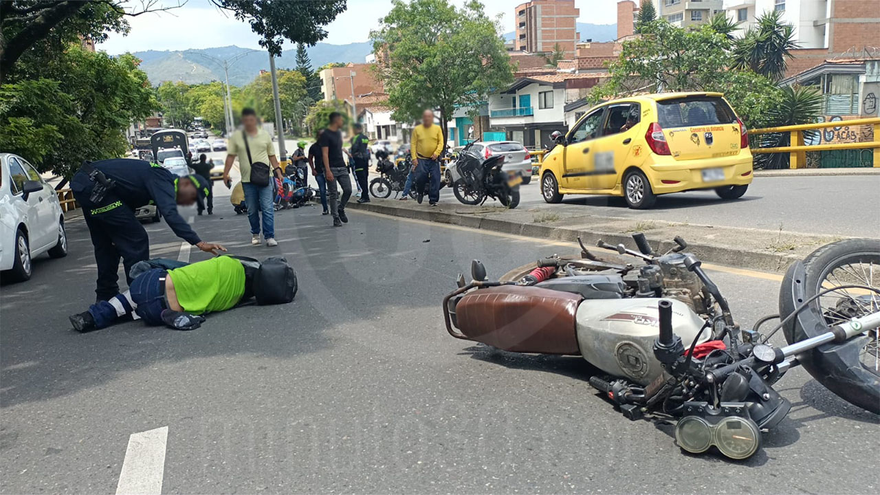 En medio del levantamiento de un cuerpo sin vida hallado por el puente de Bulerías, barrio Conquistadores, se presentó un grave accidente entre dos motociclistas.