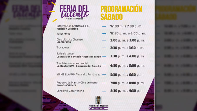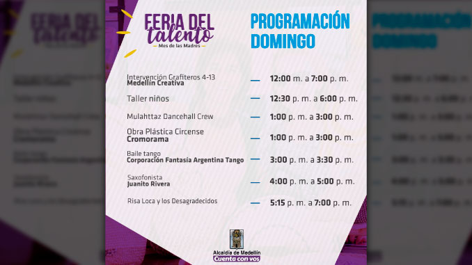Programación Feria del Talento Ciudad del Río, Medellín.
