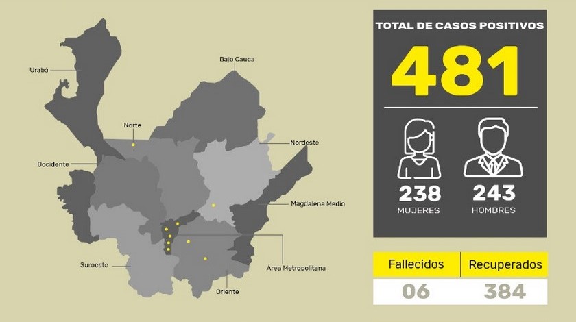 De los 7 casos reportados en el departamento a corte del 12 de mayo, se conoció que los 4 restantes están en Medellín.