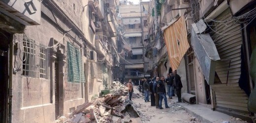Fotografía cedida por la Agencia siria SANA de varios ciudadanos limpiando las calles del barrio al-Sulaimaniyeh en Alepo (Siria). EFE/Sana