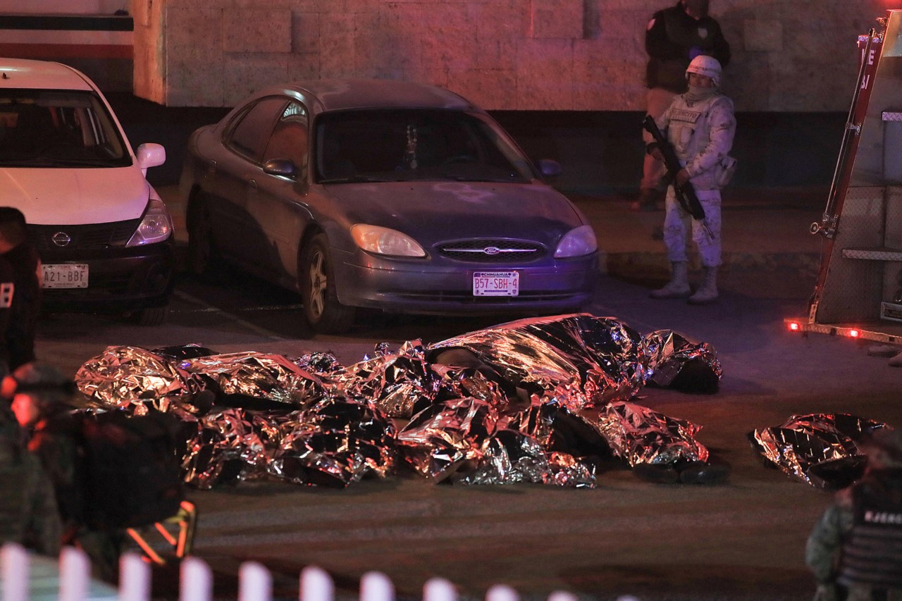 Los cuerpos de migrantes fallecidos durante un incendio en las instalaciones del Instituto Nacional de Migración (INM), la noche del 27 de marzo de 2023, en Ciudad Juárez, Chihuahua (México). EFE/Luis Torres