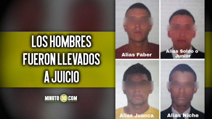 Los acusados son J. E López Gallego, alias Mueco; A. M. Herrera, alias Soldo; E. Córdoba Mena, alias Niche; J. C. Henao Toro, alias Juanca; y F. M. Orozco Arango, alias Faber.