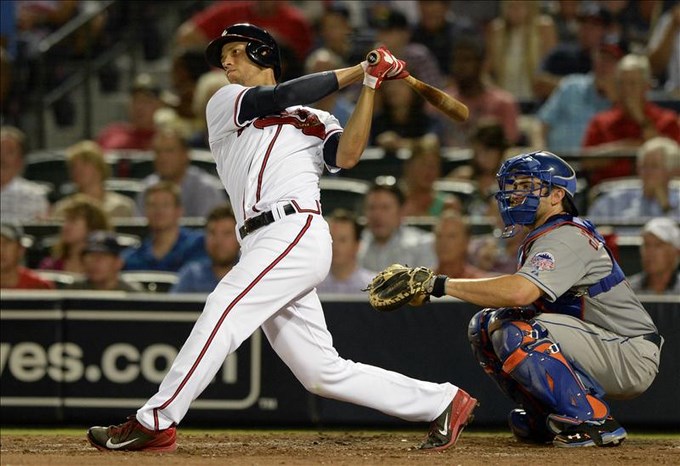 El jardinero izquierdo Evan Gattis pegó su vigésimo jonrón de la temporada que fue un bambinazo de dos carreras contra el relevista Tyler Clippard en la parte alta de la octava entrada y los Bravos se pusieron por primera vez con ventaja de 4-3 en la pizarra después de haber estado abajo desde el episodio inicial 0-3.