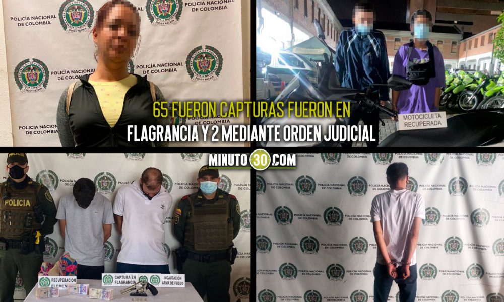Un total de 67 ladrones fueron capturados en los últimos días en el Valle de Aburrá, en desarrollo de la estrategia contra el hurto, 65 de estas capturas fueron en flagrancia y 2 mediante orden judicial.