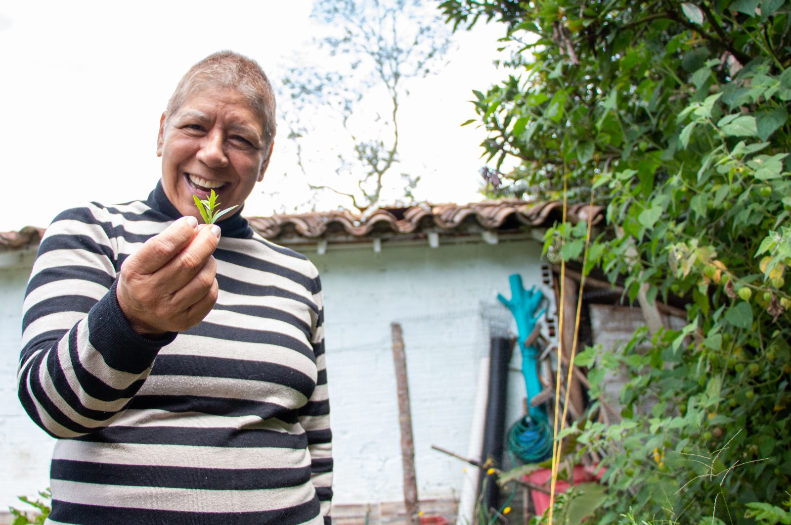 “Hemos recibido unos insumos muy importantes y valiosos, porque trabajamos todo el tema orgánico. Me he sentido muy beneficiada, porque en este momento estoy atravesando un proceso de cáncer y la alimentación sana es valiosísima para mí”, expresó Margarita Molano, beneficiaria del Equipo de Seguridad Alimentaria y Nutricional.