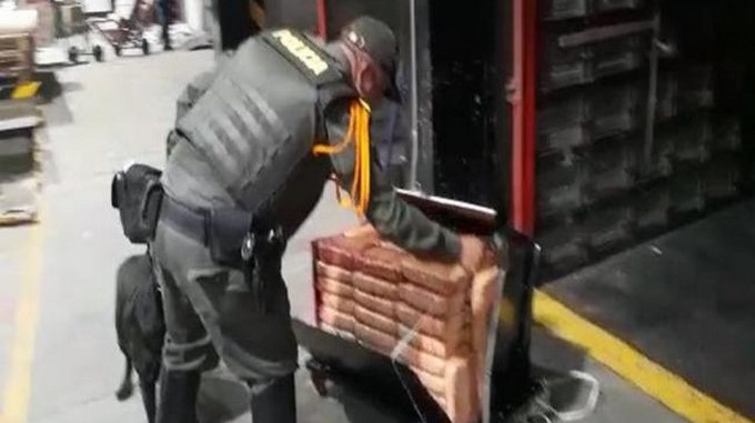 Según detallaron las autoridades, la droga se encontraba en un camión de envíos donde tras indagar la mercancía, el canino ‘Terry’ especializado en antinarcóticos, encontró algo extraño en una encomienda.