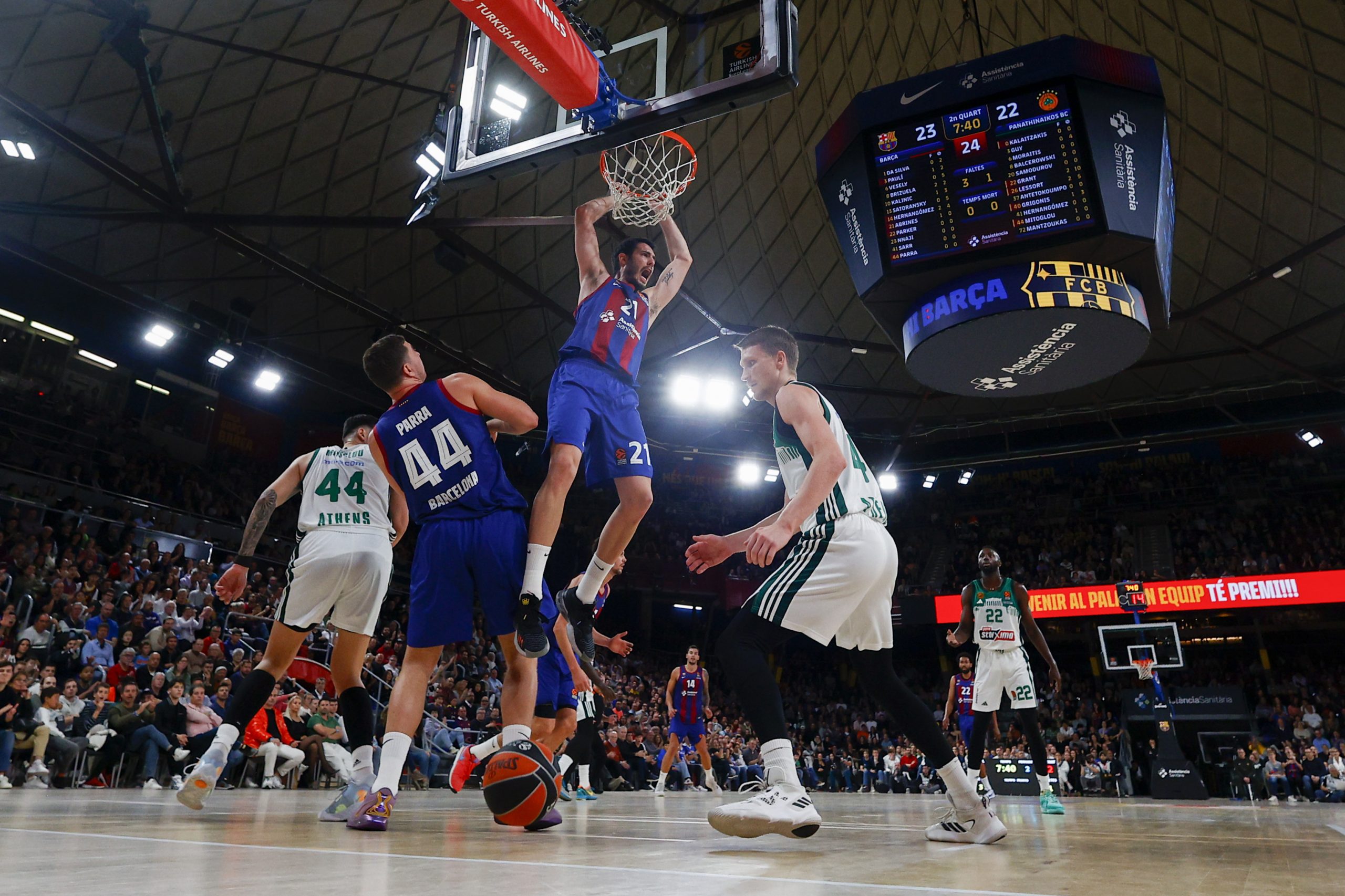 De entrada, los azulgranas defendieron duro, cerraron el rebote y explotaron la conexión entre los checos Vesely y Satoransky para mandar con ventajas cortas (13-7, min.5), pero el Panathinaikos aguantó el pulso a base de arreones individuales.