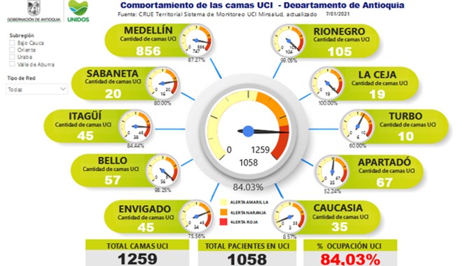 Los municipios donde hay camas UCI en Antioquia presentan la siguiente ocupación: