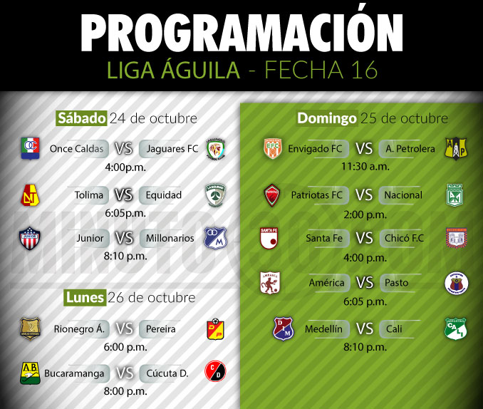 Con tres partidos, entre los que sobresale el de Junior y Millonarios, se abrirá este sábado la fecha 16 de la Liga