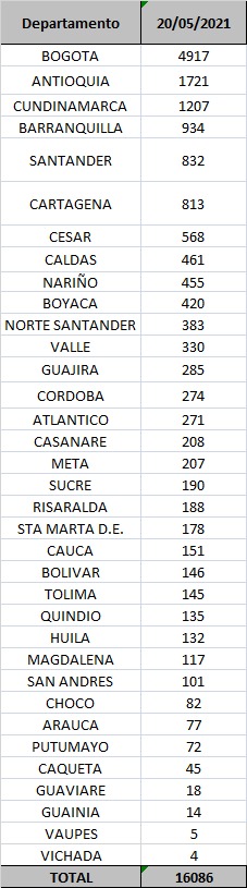 104.273 casos activoshttps://t.co/SiKTpTCQ3W pic.twitter.com/Vt20tSZwLt— MinSaludCol (@MinSaludCol) May 20, 2021