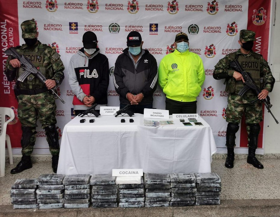 De acuerdo con la información oficial, los sujetos también tenían en su poder dos armas de fuego, munición, proveedores, equipos de comunicaciones y material de intendencia de uso privativo de las Fuerzas Militares.
