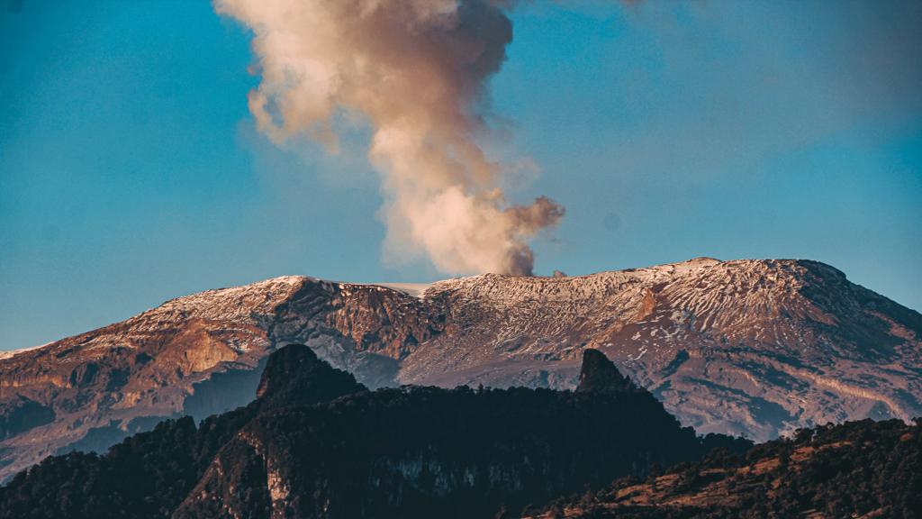 Dato: Según datos entregados por la Aeronáutica Civil de Colombia, la mañana de este jueves 23 de diciembre, se avistó una fumarola del volcán Nevado del Ruiz que alcanza los 27.000 pies de altura.