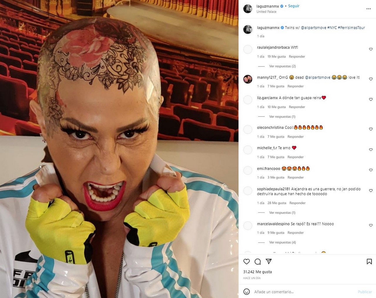 A través de redes sociales la cantante Alejandra Guzmán le mostró a sus seguidores un radical cambio de look, quitó su cabello y apareció completamente calva. Además, lució un diseño de tatuajes que abarcó gran parte de su cabeza.