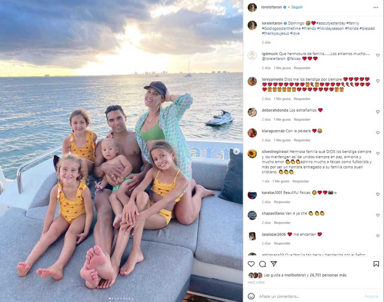 Radamel Falcao García y la argentina Lorelei Tarón llevan juntos 15 años. Lorelei y el futbolista ya tiene cuatro hijos: tres niñas y un niño.