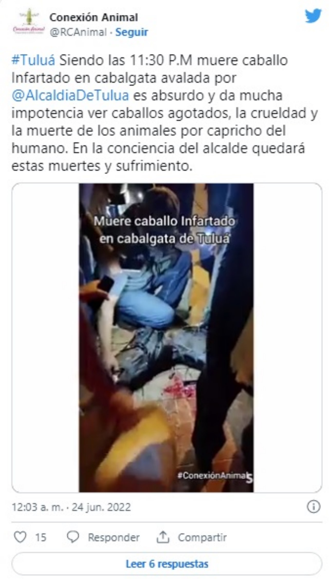 🚨Un caballo murió tras un infarto que sufrió en una cabalgata que se llevó a cabo en Tuluá, peleas y maltrato a los equinos, registraton varias personas. Animalistas denunciaron que habían varios caballos heridos y hasta yeguas en gestión. pic.twitter.com/ToYXFg0SvZ