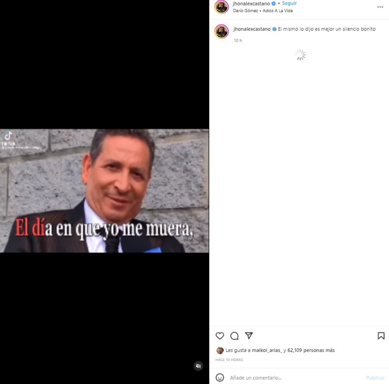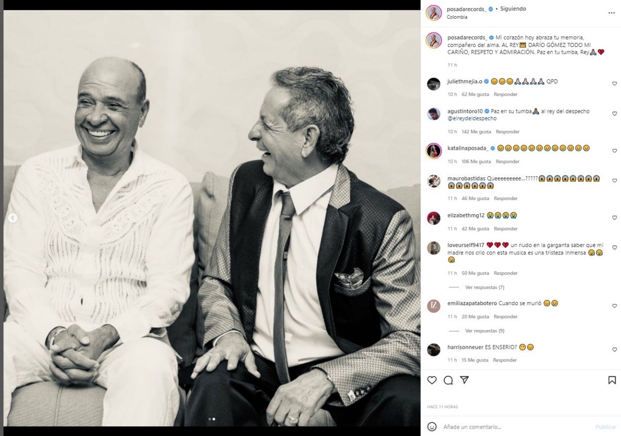 Jhonny Rivera, compartió en Instagram un video junto a un mensaje de despedida: “Con profunda tristeza recibo la noticia del fallecimiento de nuestro Rey del Despecho, un referente de la música popular, gran amigo y fuente de inspiración en mi carrera, paz en su tumba, su legado permanecerá por siempre”.