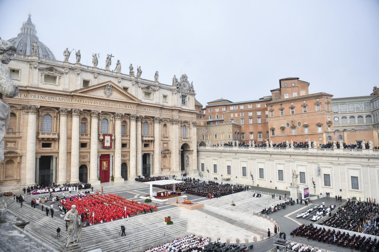 El féretro con los restos mortales fue trasladado a hombros por doce “sediarios”, los portadores de las antiguas Sillas Gestatorias, hasta el atrio de una plaza de San Pedro envuelta hoy por una densa niebla desde el interior de la basílica, donde había sido instalada la capilla ardiente, visitada por cerca de 200.000 personas durante los tres días previos al funeral.