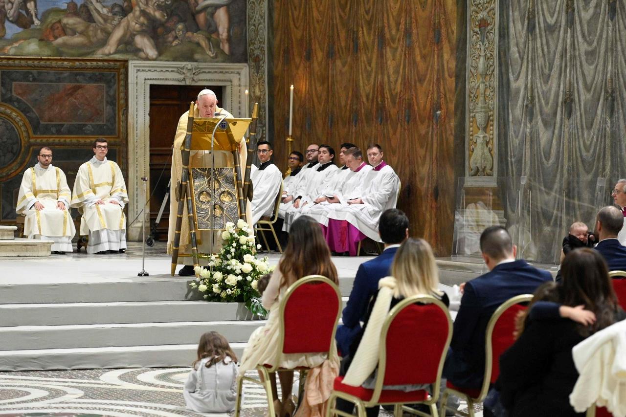 “Estos niños comienzan un camino, a vosotros os corresponde ayudarles a andar hacia adelante”, dijo Francisco en una breve homilía que pronunció de manera improvisada y en la que se dirigió especialmente a los padres y padrinos de los pequeños.