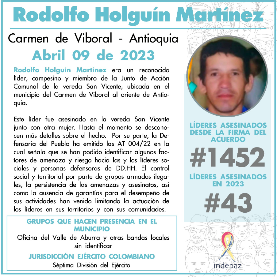 Él se convierte en el líder número 43, asesinado en Colombia.