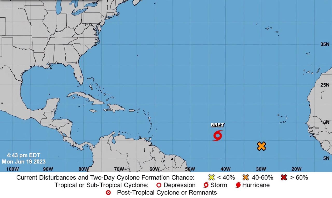 Miami, 20 jun (EFE).- El Centro Nacional de Huracanes (NHC, en inglés) informó este lunes de la formación de Bret, la segunda tormenta tropical de la cuenca atlántica, la cual va rumbo a las Antillas Menores y con posibilidad de convertirse en huracán en dos días.