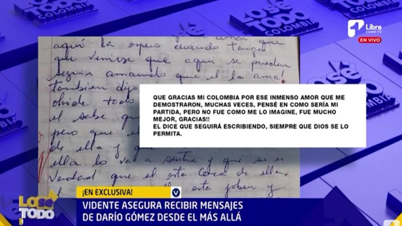 Luz Amparo Muñoz, vidente colombo venezolana, reveló escritos al Programa “Lo Sé Todo Colombia” que tiene en su poder mensajes supuestamente enviados desde el más allá por el Rey del Despecho Darío Gómez.